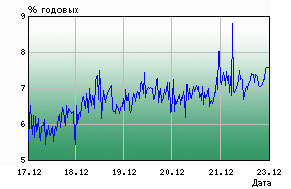 | Большинство инструментов срочного рынка демонстрировало положительную динамику по итогам недели. Особое внимание было приковано к фьючерсам на акции Норильского никеля. Они подорожали на +3,25%. Катализатором роста явились слухи о том, что В. Потаниным найдены средства для покупки акций у М. Прохорова. Но положительная динамика была «смазана» новостью об отказе Потаниным выкупать блок-пакет у второго мажоритарного акционера. Несмотря на снижение активности инвесторов в преддверии Нового года, в середине прошлой недели спрос на фьючерсы на индекс РТС находился на высоких уровнях, рост цены составил 1,88%. |